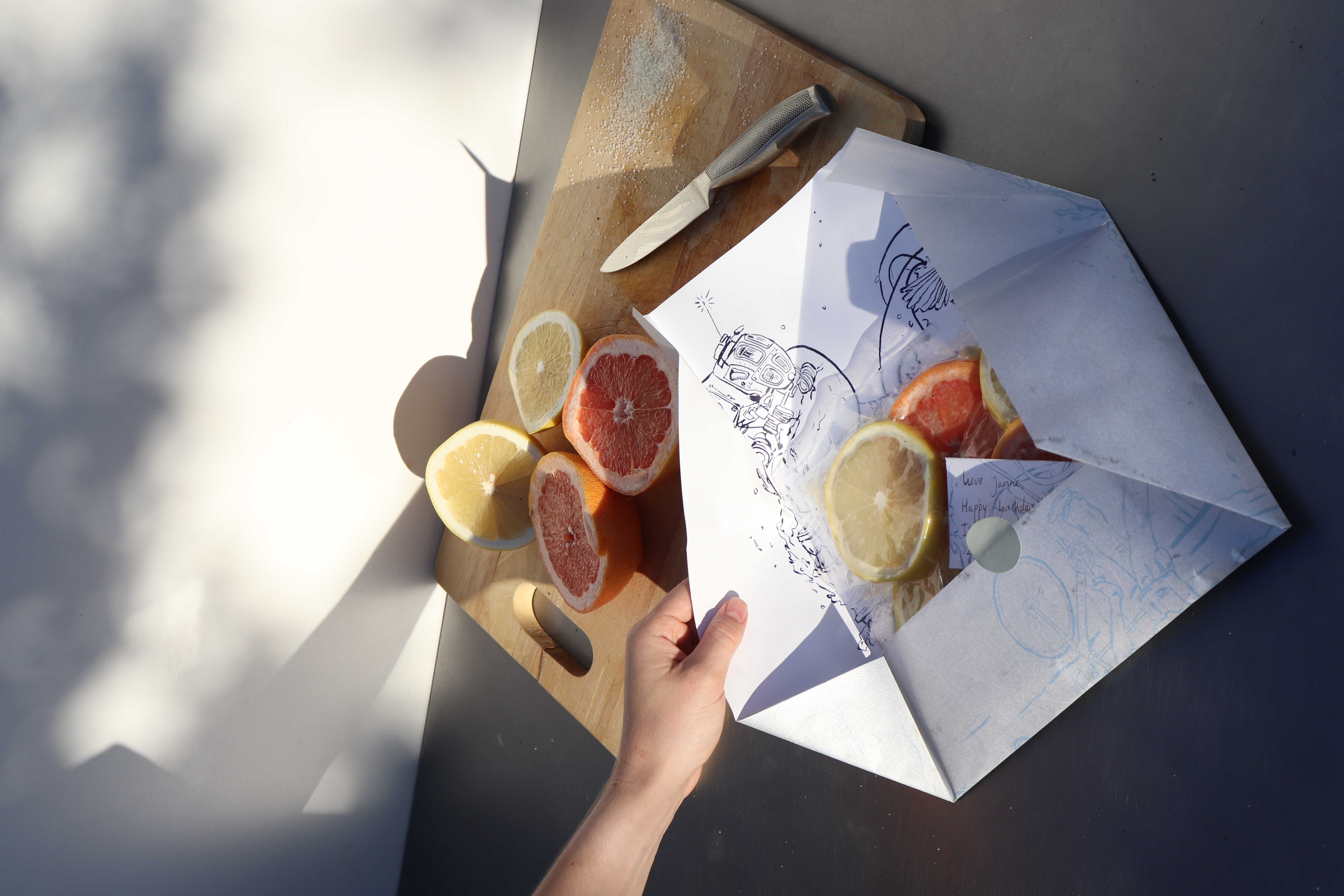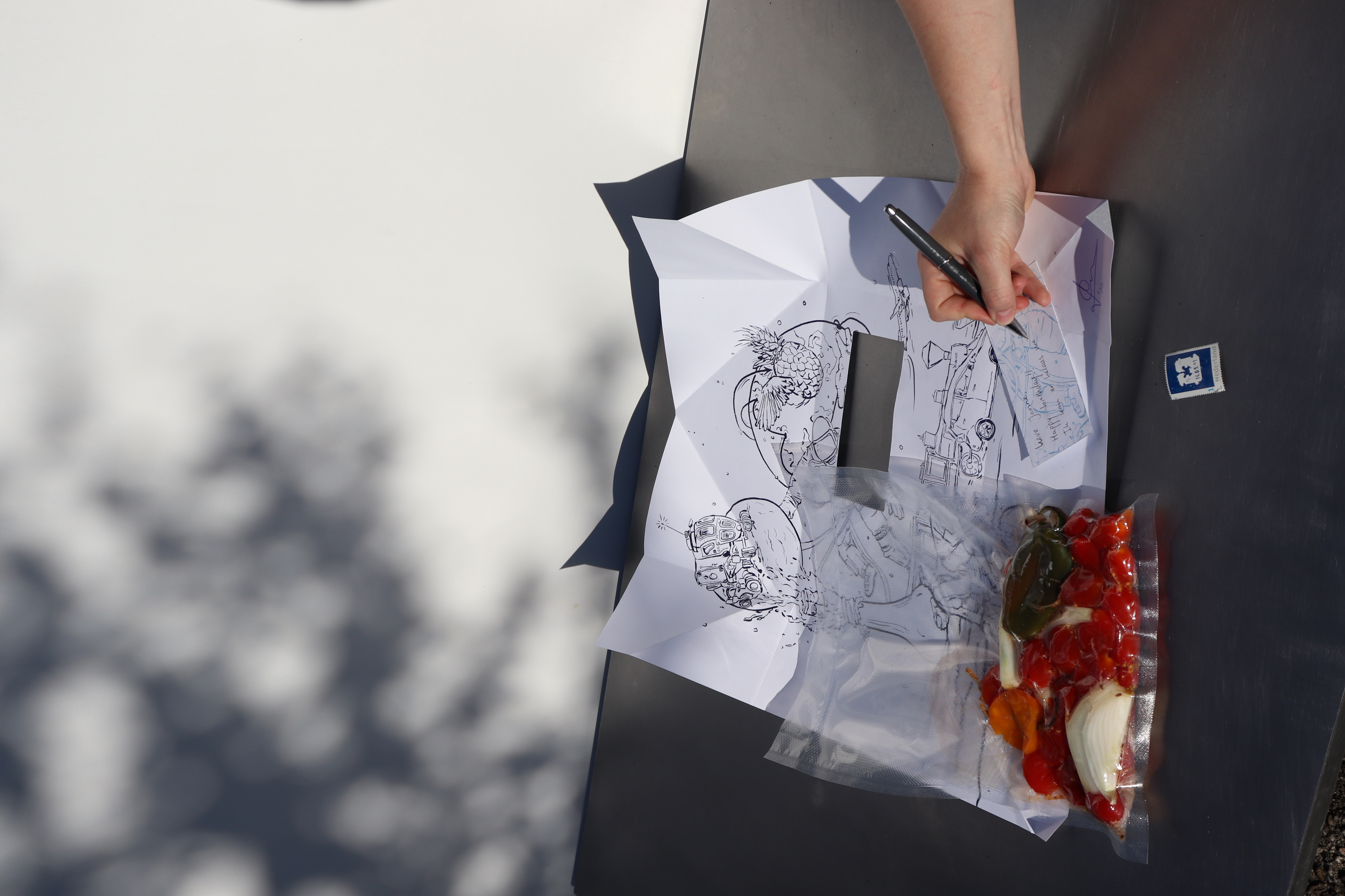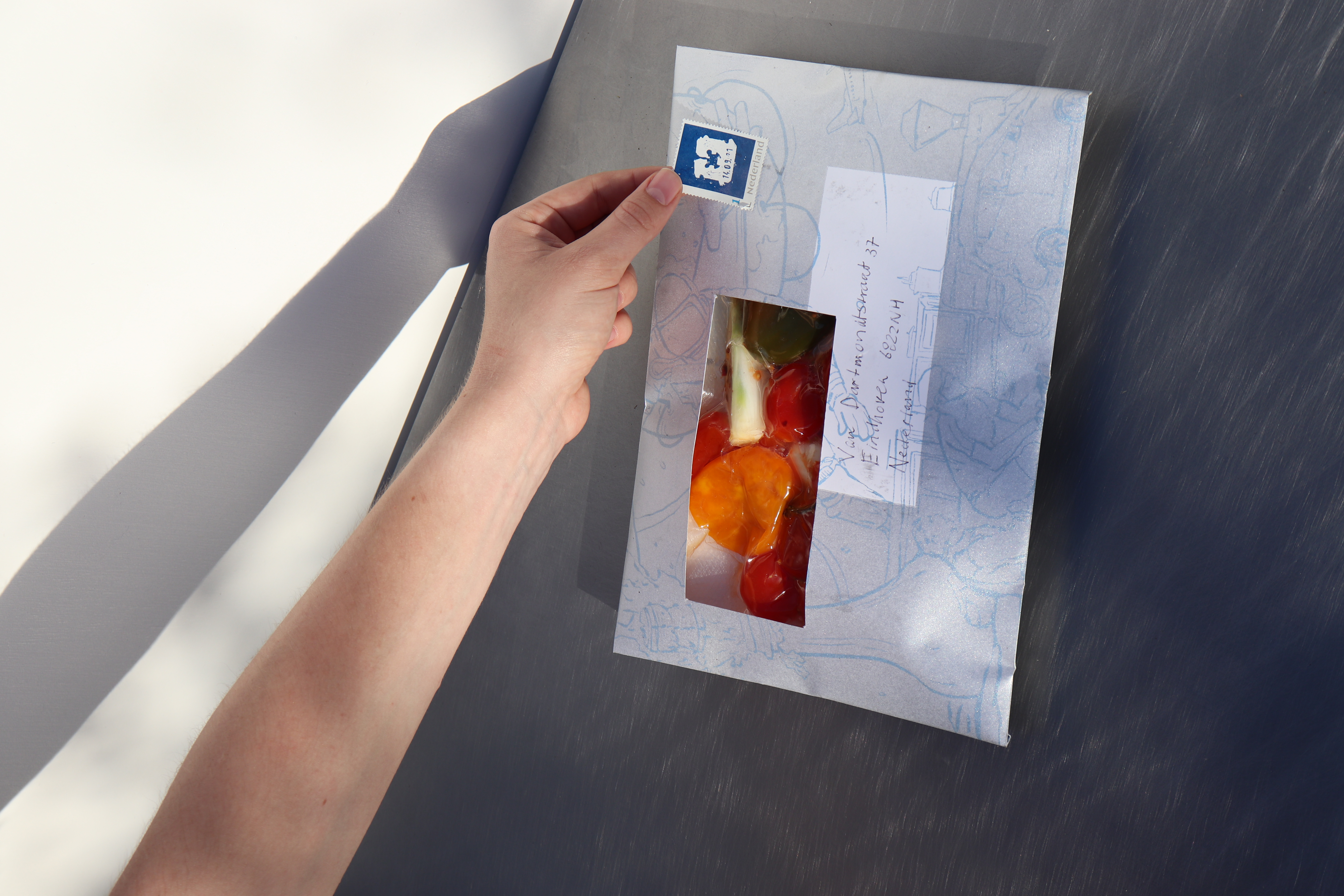 Instead of using vacuum sealing to keep all the bacteria out (which I think never really works), vacuum sealing is also very much suitable for fermentation, maturing, marinating, an making syrope for instance. And since vacuum sealing doesn’t take much space, and fermentation (and the other things just mentioned) takes its time. Perfect for sending an edible message to you grandma, that matures on the way. Food is already traveling a lot these days, we should make use of it.